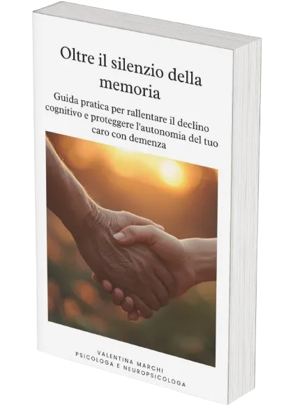 Sono la Dott.ssa Valentina Marchi, neuropsicologa clinica con una solida esperienza nella diagnosi e nella riabilitazione cognitiva e da anni aiuto le famiglie a rallentare il declino cognitivo dei propri cari e a riconquistare una qualità di vita dignitosa. Lo faccio unendo un approccio psicologico profondamente umano e attento al caregiver con strumenti tecnologici d'avanguardia come il protocollo Neuro-Attiva 360™.